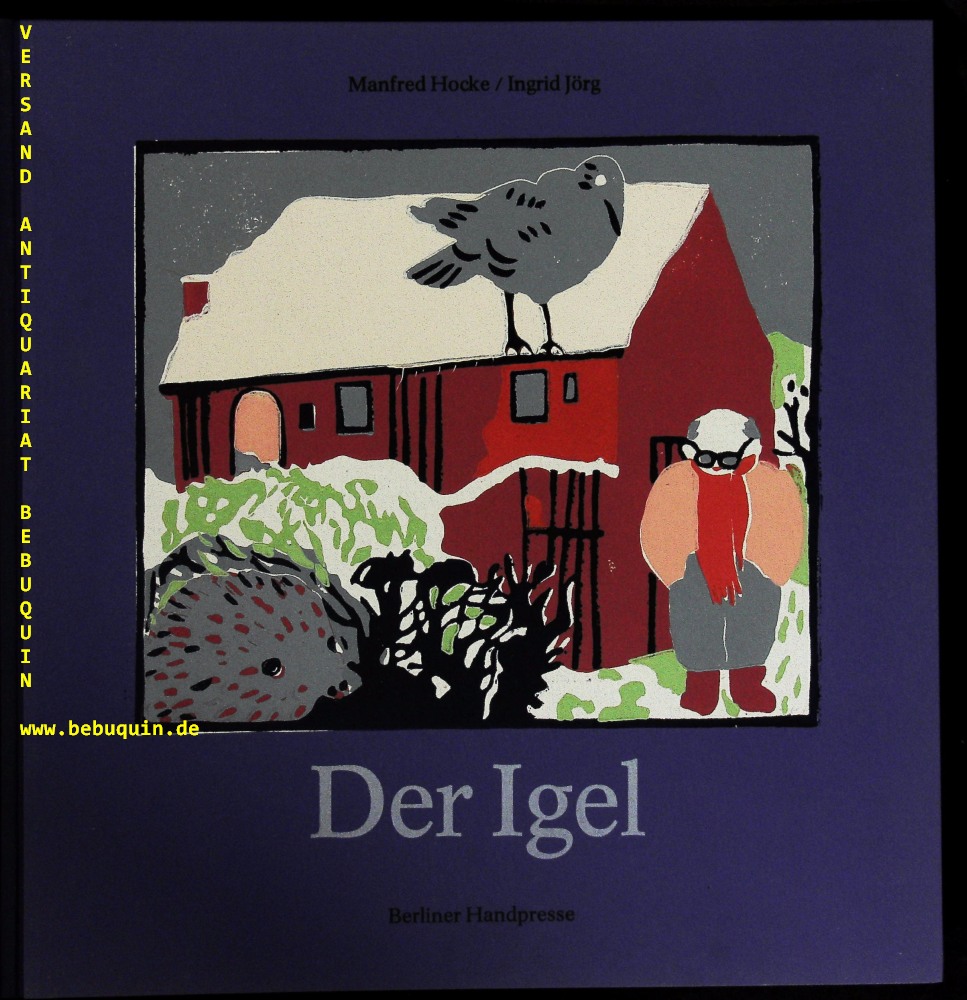 JÖRG.– HOCKE, Manfred: Der Igel. Berlin (Berliner Handpresse), 1993. 34,5 x 33,5 cm. 23 (1) S. mit 9 achtfarbigen Original-Linolschnitten von Ingrid Jörg. farb. ill. OHLn. tadellos. = Berliner Handpresse, 86. Druck. Nr. 62 von 100 nummerierten und von der Künstlerin eigenhändig signierten Ex. dieser Auflage.