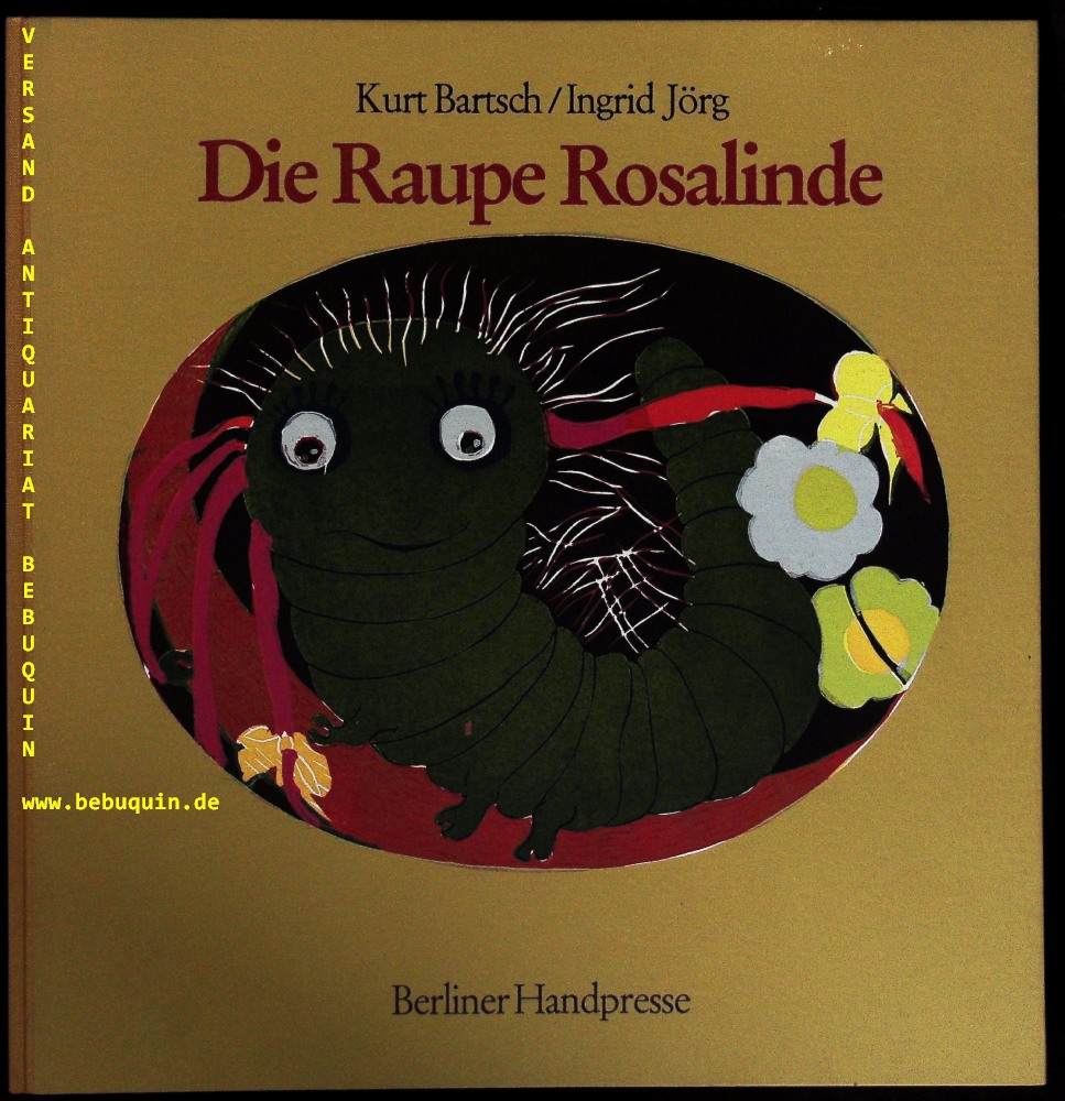 JÖRG.– BARTSCH, Kurt: Die Raupe Rosalinde. Berlin (Berliner Handpresse), 1985. 34,5 x 33,5 cm. 20 (2) S. mit 8 neunfarbigen Original-Linolschnitten von Ingrid Jörg. farb. ill. OHLn. tadellos. = Berliner Handpresse, 67. Druck. Nr. 15 von 90 nummerierten und von der Künstlerin eigenhändig signierten Ex. dieser Auflage.