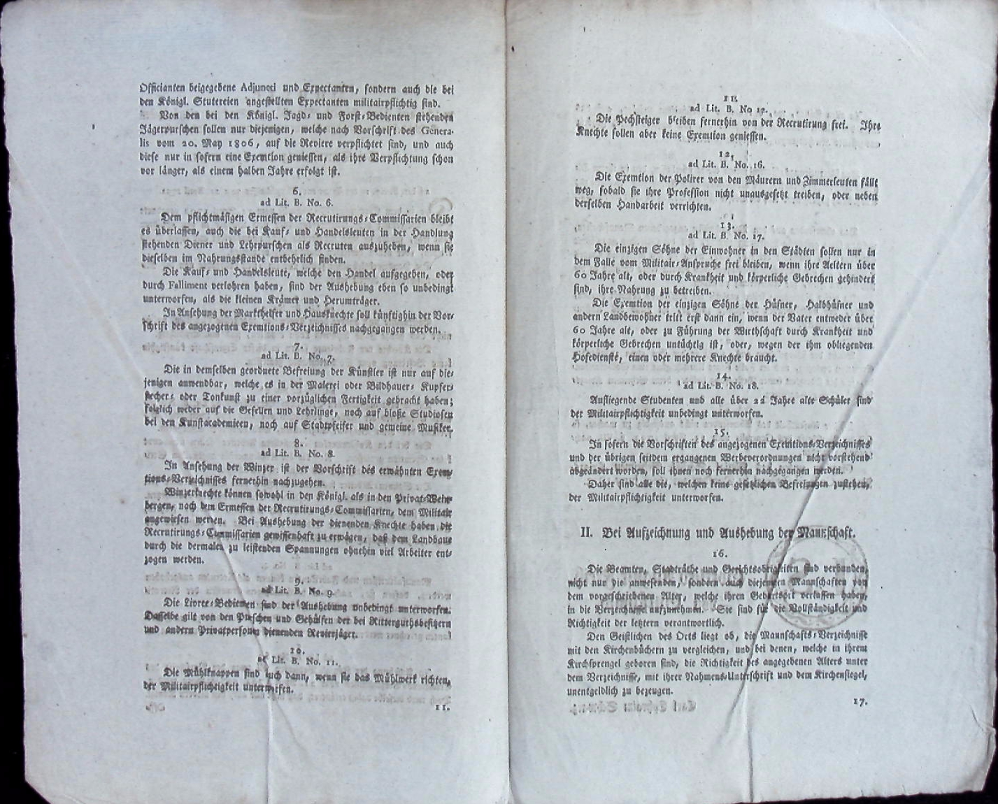 EDIKTE.– FRIEDRICH AUGUST I. (1. KÖNIG VON SACHSEN): Beurteilung der Exemtionen = Freistellung vom Militärdienst. 4seitiges Mandat vom 16. Juni 1813: Die bei den Kohlenwerken angestellten Arbeiter sollen überhaupt keine Exemtion geniessen. Nur die bei den Kohlewerken angestellten Steiger sind als exemt zu betrachten. Dresden, 1813. Gr. 4°. 4 S. leichte Knickspur. Seltenes Dokument über die Freistellung vom Militärdienst.Unterzeichnet von Gottlieb August Freiherr von Gutschmid.