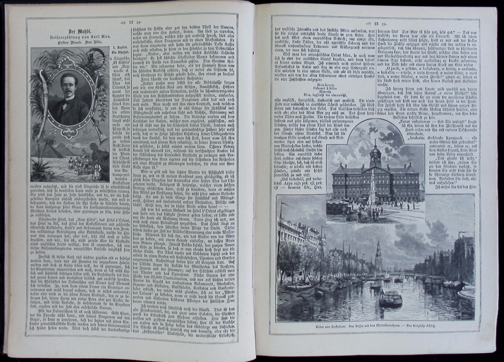MAY, Karl: Der Mahdi. Reiseerzählung. In: Deutscher Hausschatz in Wort und Bild. 2 Bände. Regensburg (Pustet), 1891/92 + 1892/93. 4°. ca 2000 S. mit zahlreichen Holzstichen und Extra-Beilagen wie „Für die Frauenwelt“ sowie „Aus der Zeit für die Zeit“ u.a. mit zahlr. Abb.. ill. OLn mit reicher Goldprägung. Kanten etwas berieben, leicht schief gelesen, StaV, überraschend gutes Ex. =18. + 19. Jg. EA. Plaul 235.