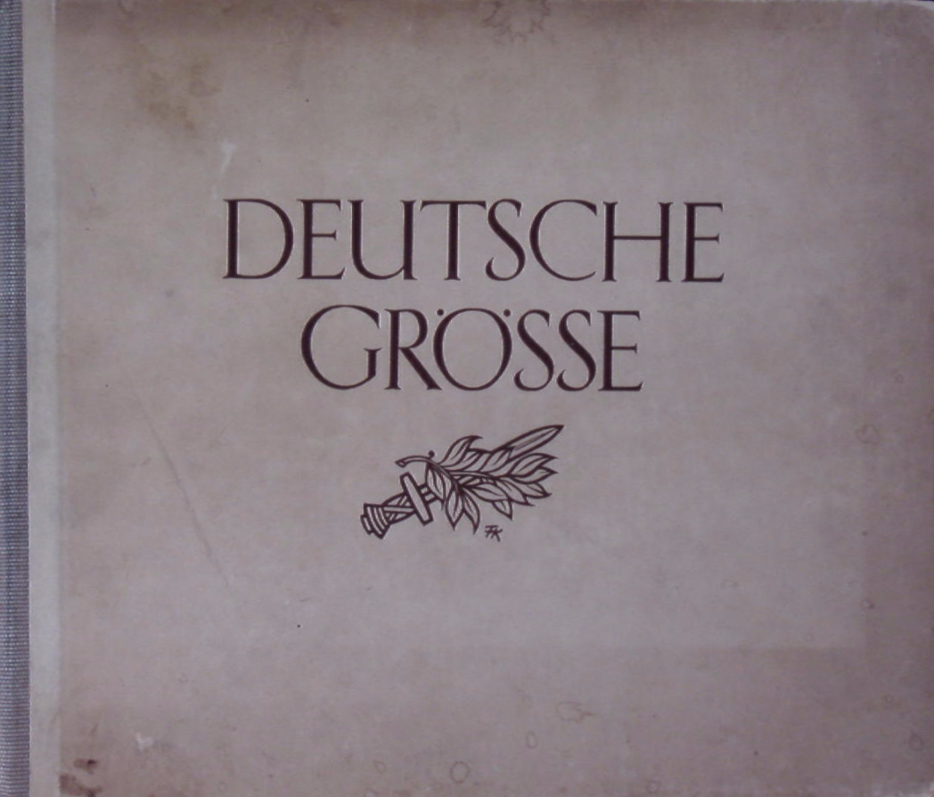 HAGEMEYER, Hans: (Hrsg.) Deutsche Größe. Bearb. von Hans Georg Otto und Otto Schneider. München (Eher), 1944. Quer 4°. 355 S. mit zahlr. Bildern und Karten. ill. OHLn. etwas gebräunt, Titelei mit Knickspur. = Die Bücherkunde: Schriftenreihe, 9. EA.