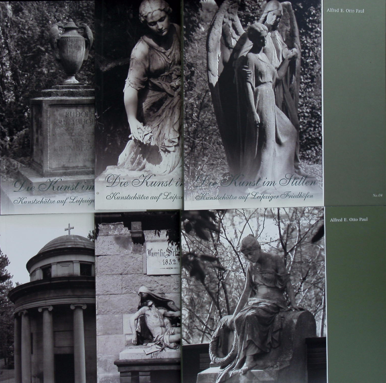 LEIPZIG.– PAUL, Alfred E. Otto: Die Kunst im Stillen. Kunstschätze auf Leipziger Friedhöfen. Bd 1 – 6 in 6 Bänden. (Leipzig) (texturama), 2009 – 2016. Gr. 8°. jeweils ca 100 – 200 S. mit zahlr. teils farb. fotografischen Bildern und Bildtafeln. farb. ill. OKart. feine Erhaltung. Hier die ersten sechs erschienenen Bände zu einem Preis. Die Bände 1 – 5 mit einer kleinen Verfassersignatur auf Titelseite.