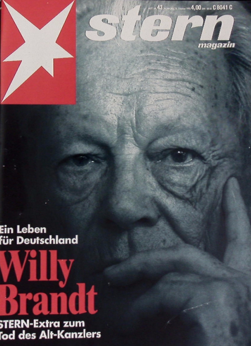 STERN MAGAZIN.– 46. Jahrgang. Nummer 43. Hamburg (Nannen), 1992. Gr. 4°. 326 S. mit teils farb. Bildern. ill. OBr. von Willy Brandt. gutes Ex. Stern Extra zum Tod des Alt-Kanzlers.
