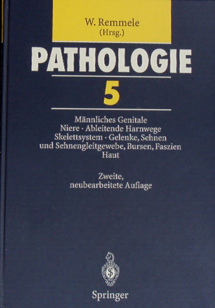 MEDIZIN.– ANEMÜLLER / DELLING / HELMCHEN / HELPAP: Männliches Genitale, Niere, ableitende Harnwege und Urethra, Skelettsystem, Gelenke, Sehnen und Sehnengleitgewebe, Bursen, Faszien, Haut. 2., neubearb. Aufl. Berlin (Springer), 1997. 4°. 616 S. mit 378 teils farb. Bildern in 816 Einzeldarstellungen imd 107 Tabellen. OPb. = Pathologie. Ein Lehr- und Nachschlagebuch / hrsg. von W. Remmele, 5. Band.