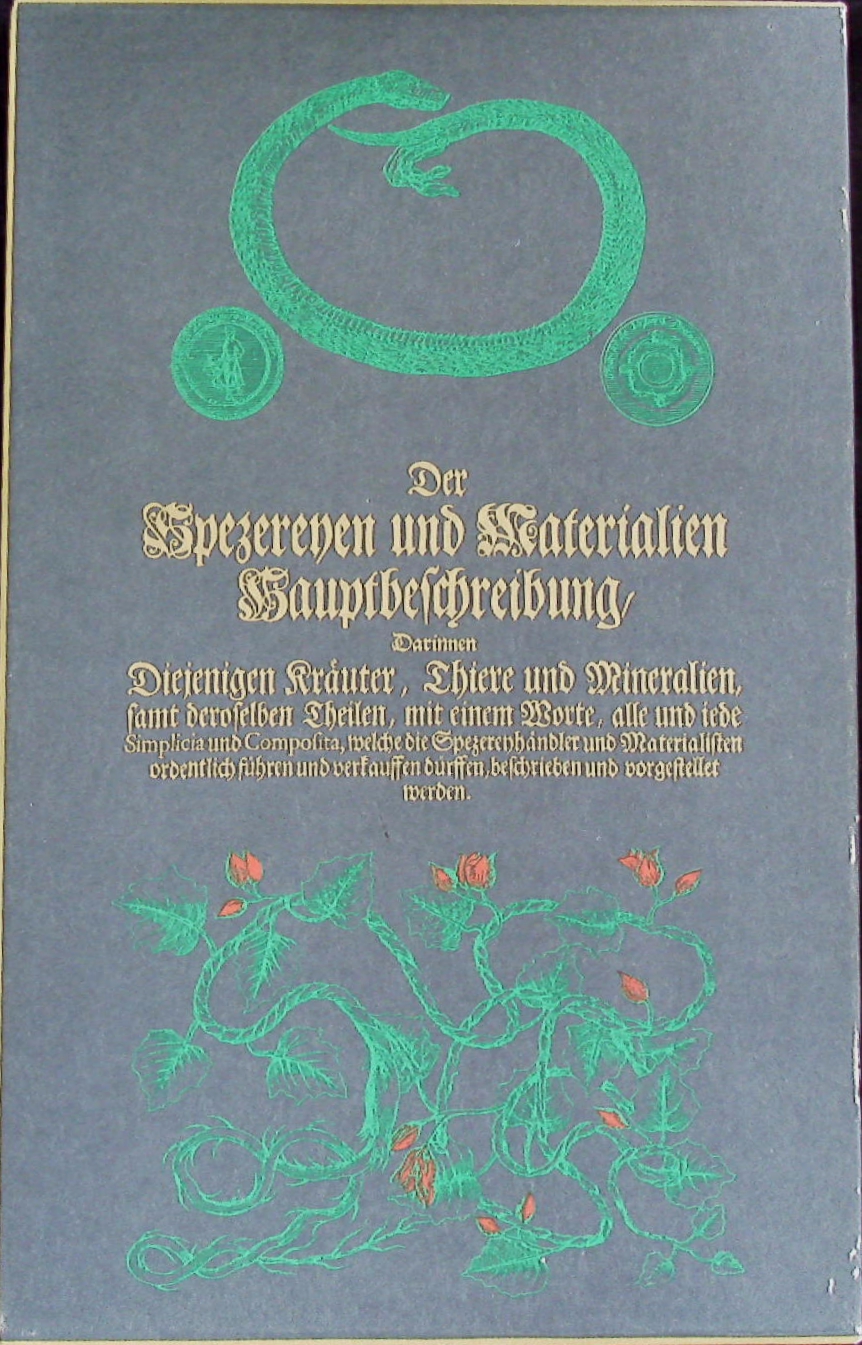 MEDIZIN.– POMET, Pierre: Der aufrichtige Materialist und Specerey-Händler. Neudruck der Ausgabe Leipzig, Gleditsch u. Weidmann, 1717 / mit e. Nachw. von Hannsgeorg Löhr. Leipzig (Edition Leipzig), 1986. Fol. 902 Sp., 22 S. mit LXVII Bildtafeln. ill. OHPrgt. in OSchuber. tadellos. = Bibliotheca historico-naturalis antiqua.