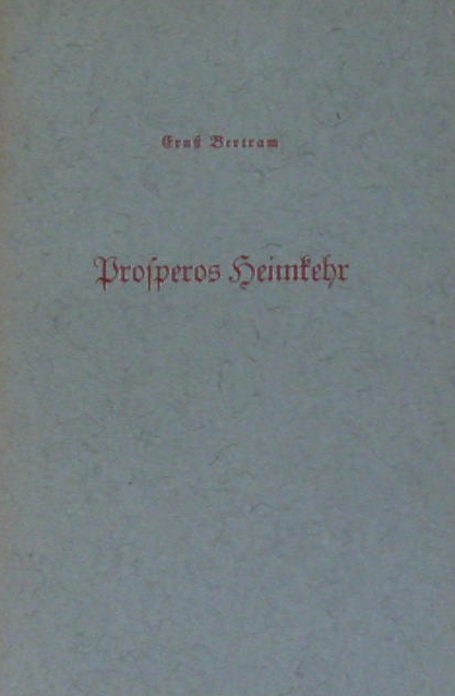 BERTRAM, Ernst: Prosperos Heimkehr. Eine Gedenkmusik zur Wiederkehr von William Shakespeares Todestag. Donauwörth (Auer), 1951. Oktav. 115 S. OKart. gutes Ex. 1 von 1000 Ex. der EA WG² 56.
