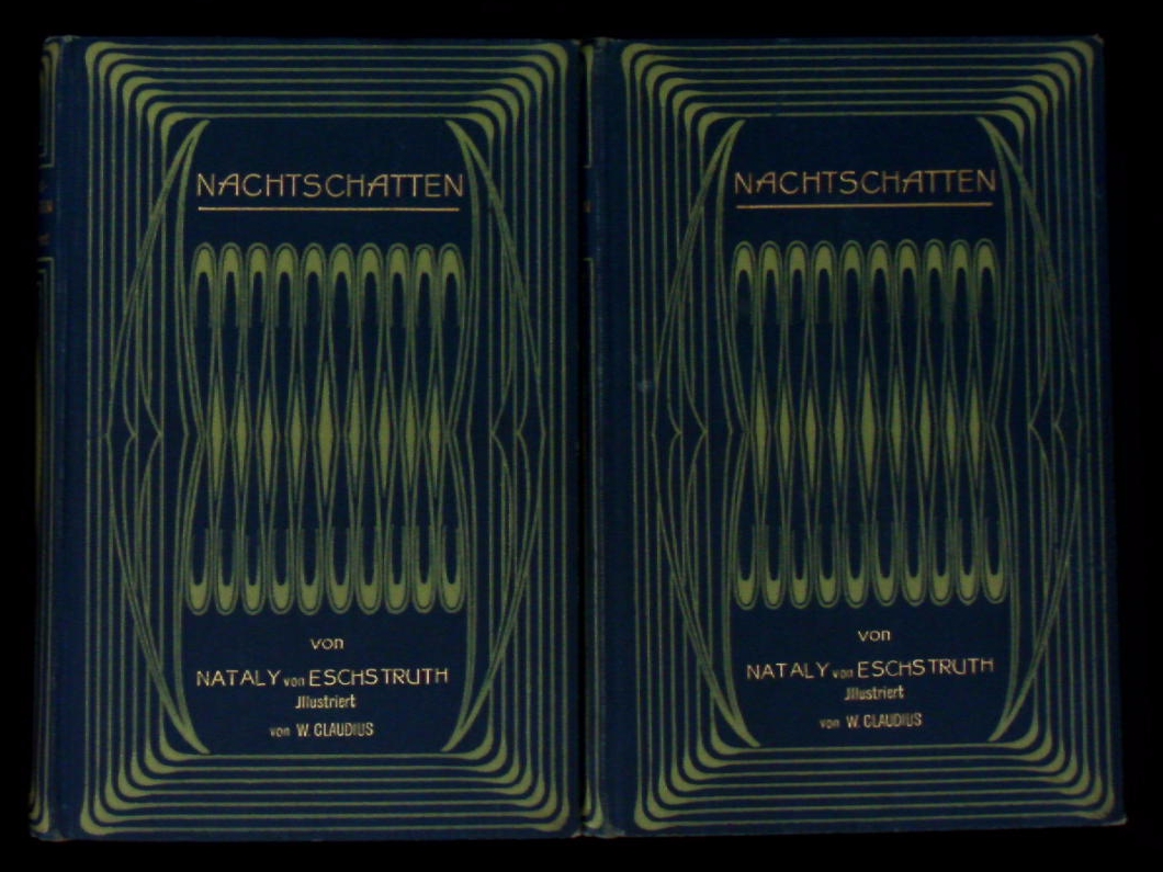 ESCHSTRUTH, Nataly von: Nachtschatten 2 Bände. Leipzig (List), ca 1900. 574 S. mit Illustrationen von W. Claudius. ill. OLn. in hellblauer Jugendstiloptik und dreiseitigem Blauschnitt. NaT, leicht schiefgelesen.
