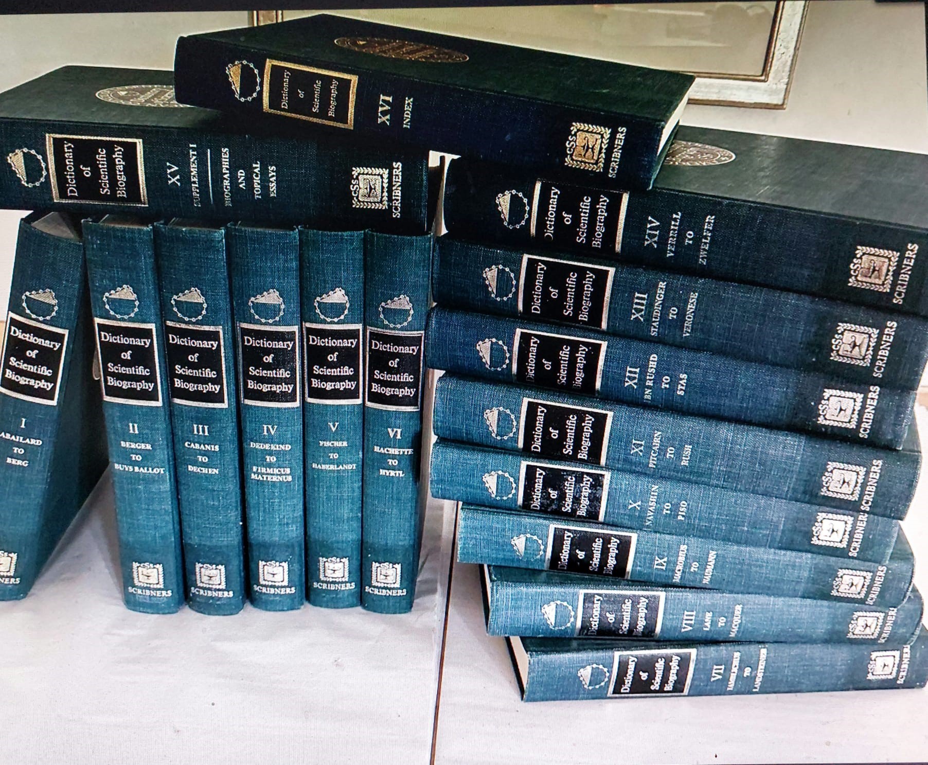 LEXIKA.– GILLISPIE, Charles Coulston: (Hrsg.) Dictionary of scientific biography. 16 Bände. New York (Scribner), 1970 – 1980. je Band ca 640 S. mit zahlr. Abb. OLn mit silbergeprägter Deckelvignette und OUmschl. Vorsätze mit wenigen Kleberesten, sonst sehr gut erhalten. EA dieses wichtigsten Nachschlagewerks über wissenschaftliche Biographien, erschlossen durch ein ausführliches Register.