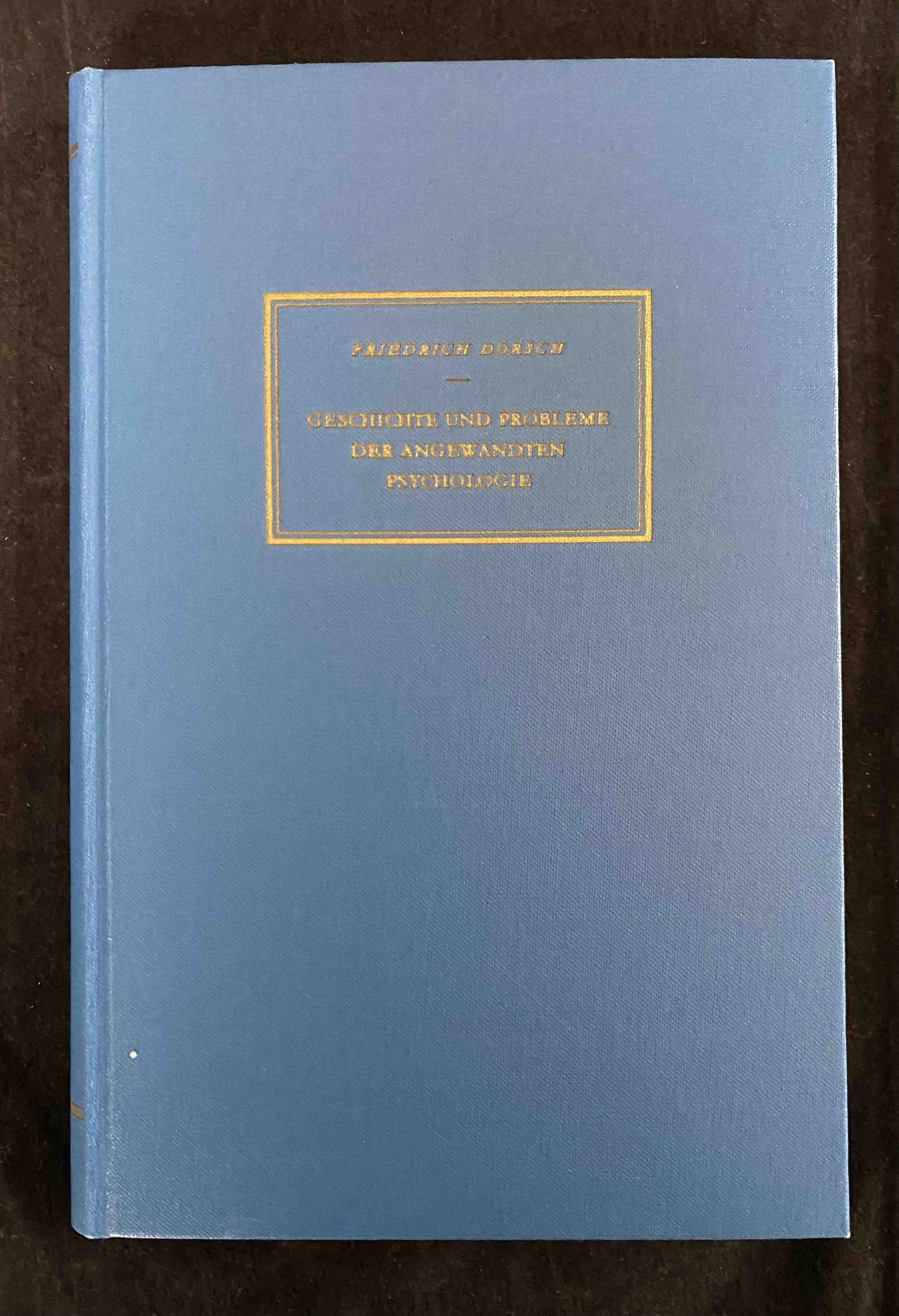 PSYCHOLOGIE.– DORSCH, Friedrich: Geschichte und Probleme der angewandten Psychologie. Bern/Stuttgart (Huber), 1963. Gr 8°. 282 S. OLn. gutes Ex. EA.