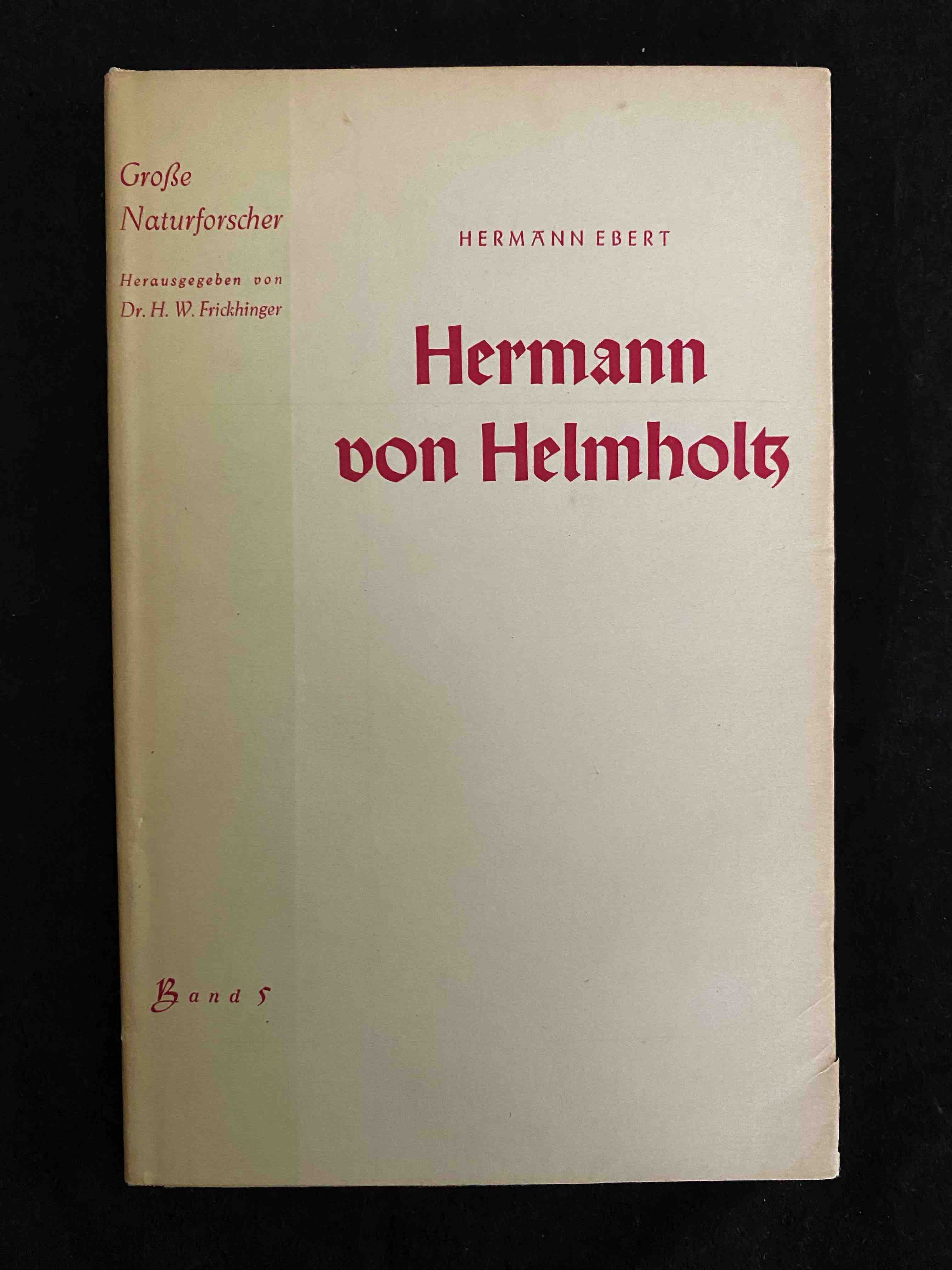WISSENSCHAFT.– EBERT, Hermann: Hermann von Helmholtz. Stuttgart (Wissenschaftliche), 1949. Oktav. 199 S. mit 5 Textabb. OHLn mit OUmschl. = Große Naturforscher, Bd. 5. EA.