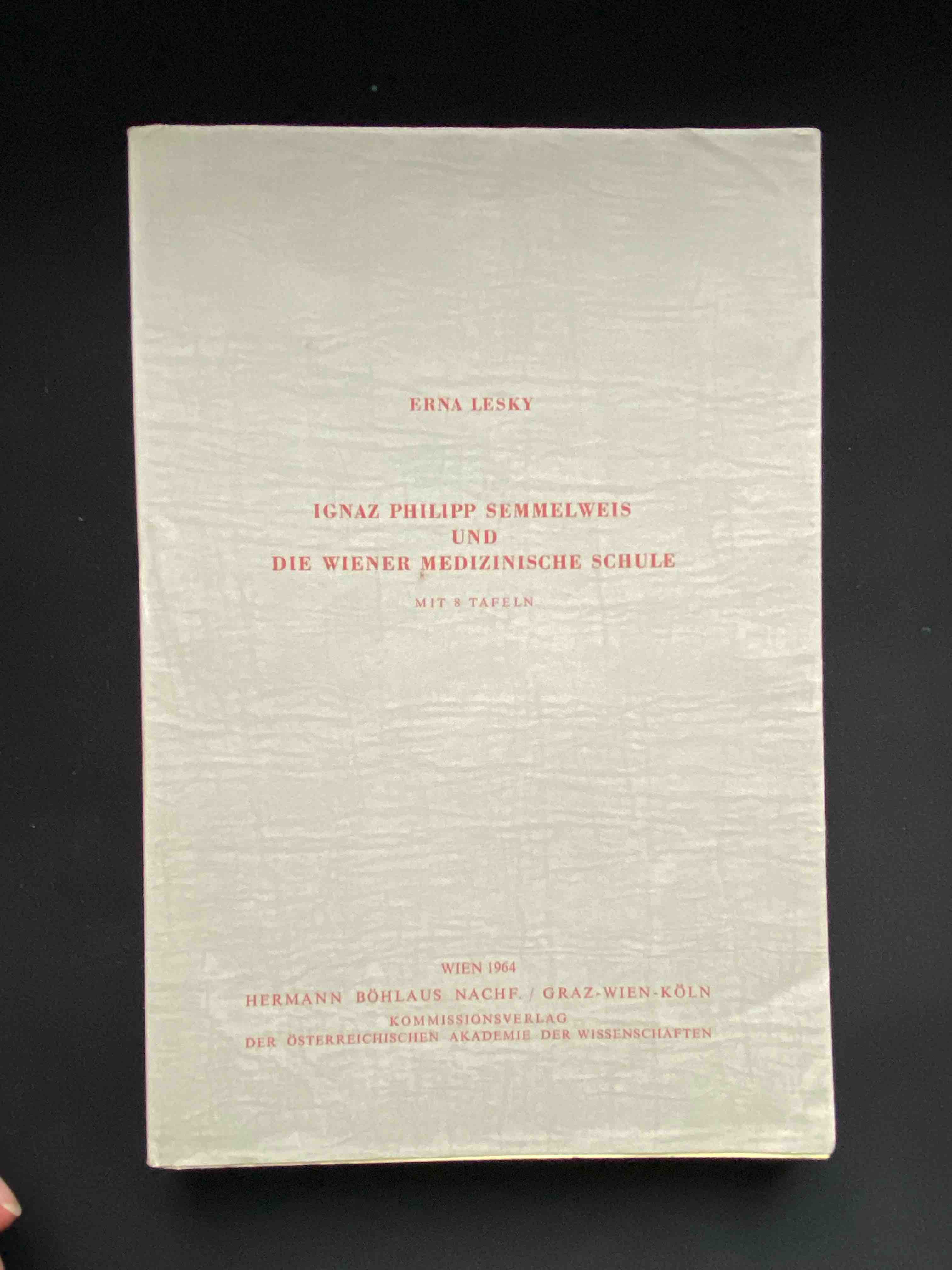 MEDIZIN.– LESKY, Erna: Ignaz Philipp Semmelweis und die Wiener medizinische Schule. Wien (Böhlau), 1964. Gr. 8°. 93 S. mit 8 Tafeln. OKart mit OUmschl. vereinzelt fleckig. = Veröffentlichungen der Kommission für Geschichte der Mathematik und der Naturwissenschaften, Bd. 1. EA.