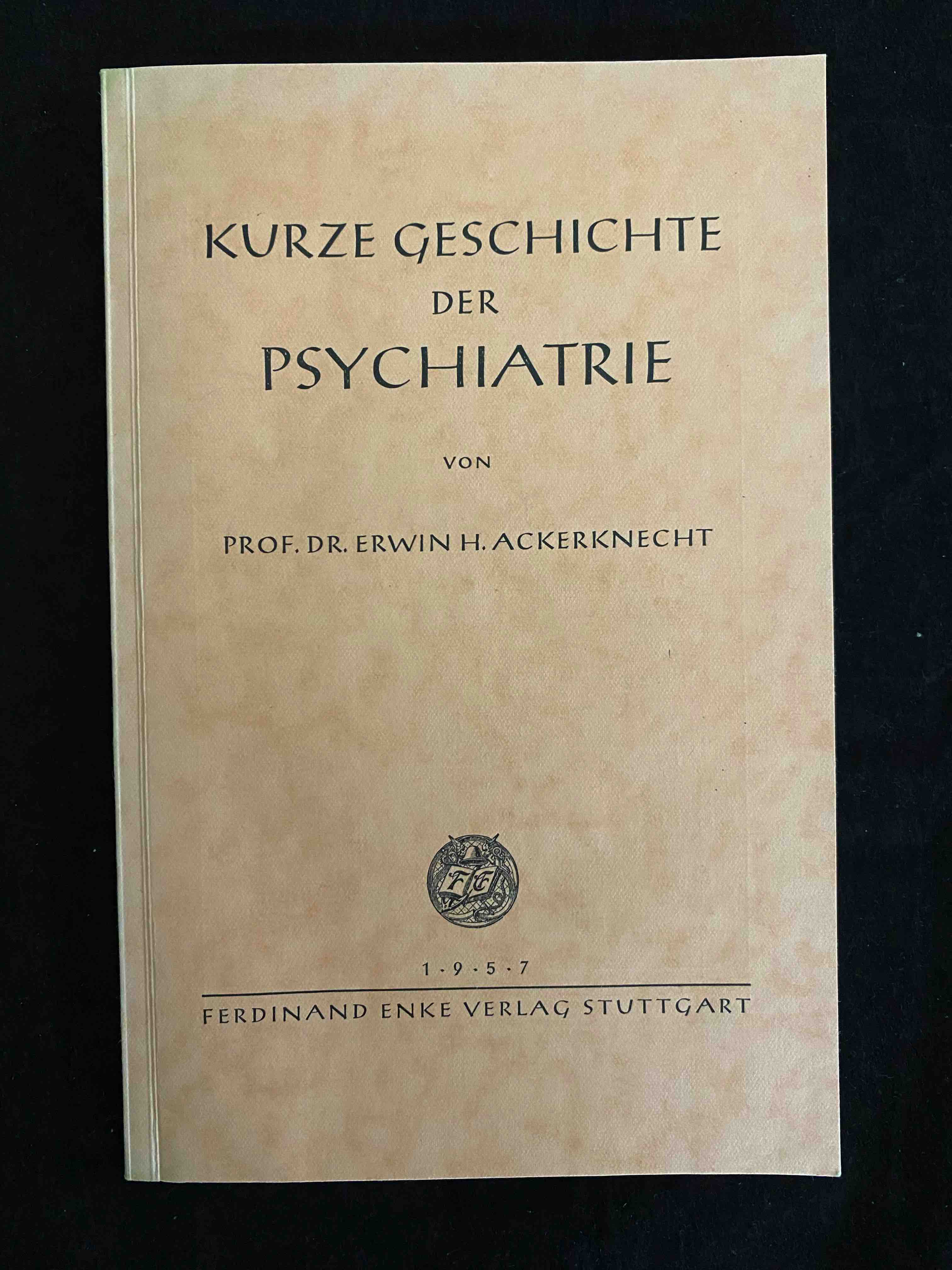 MEDIZIN.– ACKERKNECHT, Erwin Heinz: Kurze Geschichte der Psychiatrie. Stuttgart (Enke), 1957. IX, 99 S. OKart. Vorsätze mit Kleberesten, sonst gut. EA. Erwin Heinz Ackerknecht (* 1. Juni 1906 in Stettin; † 18. November 1988 in Zürich) war ein deutschamerikanischer Arzt, Ethnologe und Medizinhistoriker. In den 1930er Jahren war er einer der Führer der deutschen Trotzkisten gewesen. Als international bekannter und führender Medizinhistoriker betrachtete er die Medizingeschichte im sozio-kulturellen und ethnologischen Kontext. Ackerknecht, dem von den Nationalsozialisten die deutsche Staatsbürgerschaft aberkannt worden war, wurde 1948 Bürger der Vereinigten Staaten von Amerika. Als von ihm verfasste Standardwerke gelten u. a. eine Biographie Rudolf Virchows und die Kurze Geschichte der Medizin. (Wikipedia)