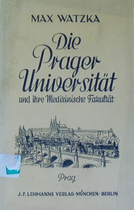 MEDIZIN.– WATZKA, Max: Die Prager Universität und ihre Medizinische Fakultät. München/Berlin (Lehmanns), 1941. 75 S. ill. OKart. Vorsätze mit Flecken. seltene EA.