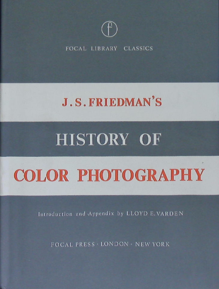 TECHNIK.– FRIEDMAN, Joseph S.: History of color photography. Appendix by Lloyd E. Varden. 2. ed., 3. imprint. London (Focal Press), 1972. Gr. 8°. XVI, 565 S. mit zahlr. Abb. OLn mit OUmschl. gutes Ex.