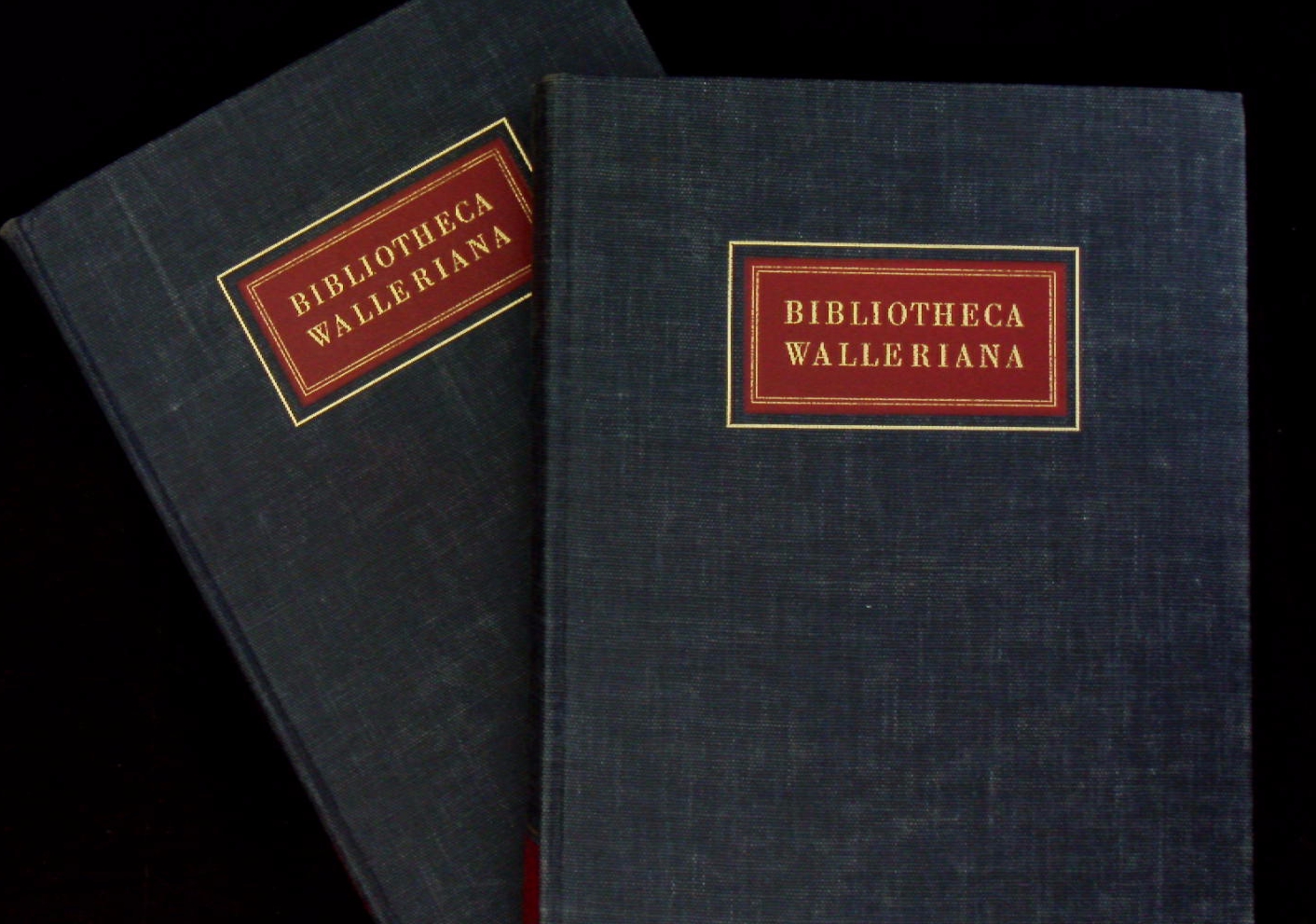MEDIZIN.– SALLANDER, Hans: Bibliotheca Walleriana. The books illustrating the history of medecine and science, collected by Dr Erik Waller and bequeathed to the Library of the Royal University of Uppsala. A catalogue. 2 Bände. Stockholm (Almqvist & Wiksell), 1955. 4°. XII, 471, 494 S. mit dem Titelportrait + 55 Bildtafeln. OLn. Vorsätze etwas fleckig. = Acta Bibliothecae R. Universitatis Upsaliensis. Die wichtige Bibliographie mit 20428 Titeln aus dem Gebiet der Medizin mit voller Paginierung und Tafelangabe.