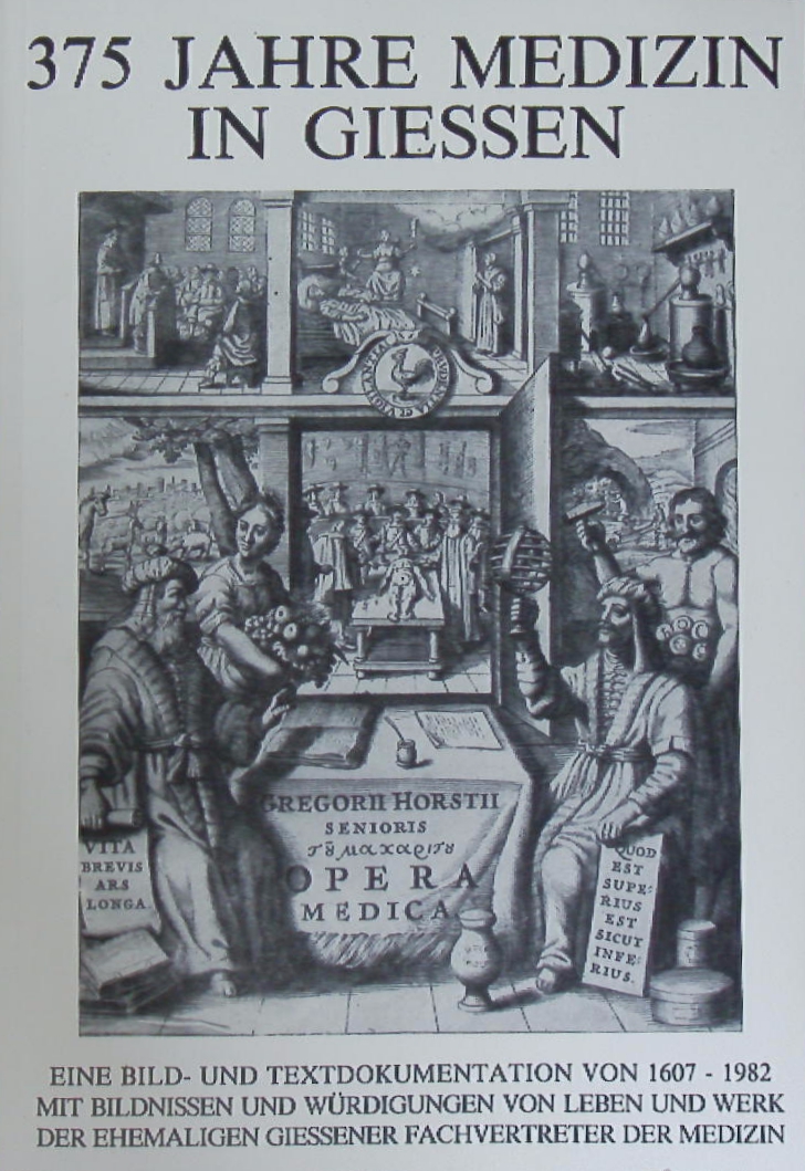 GIESSEN.– BENEDUM, Jost: 375 Jahre Medizin in Giessen. Ein Bild- und Textdokumentation. Katalog zur Ausstellung anlässlich der 375-Jahrfeier im Institut für Anatomie und Zytobiologie vom 11.5. – 30.6.1982. 2. stark erweiterte Aufl. Giessen (Schmitz), 1983. Gr. 4°. 235 S. mit zahlr. Abb. ill. OKart. feines Ex.