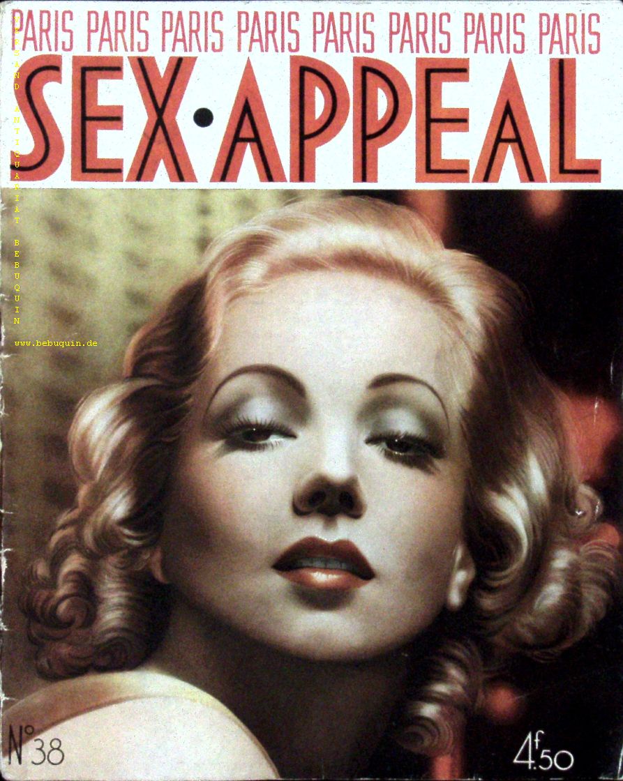 EROTIK.– PARIS SEX APPEAL.– No 38. Revue mensuelle le plus Parisien. Paris (Henri Francois), 1936. 4°. 24 Bl. mit zahlr. teils fotografischen Bildern von zumeist unbekleideten Menschen. farb. ill. OKart. Mittellagen lose und etwas verklebt. EA.