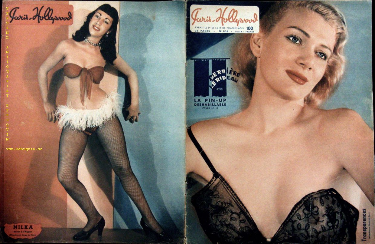 EROTIK.– PARIS HOLLYWOOD.– No. 108. Paris, 1951. Gr. 4°. 12 Bl. mit teils farb. Fotografien unbekleideter Frauen. farb. ill. OBr. feins Ex. EA.
