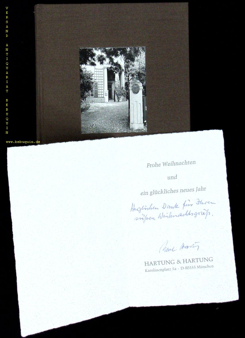 HARTUNG, Felix: (Hrsg.) Varia antiqvaria. Festschrift für Karl Hartung zum 80. Geburtstag, 4. September 1994. Privatdruck. München (Hartung und Hartung), 1994. 157 S. mit zahlr. Bildern. OLn mit mont. Foto. feines Ex. EA mit einer eigenhändigen voll signierten Widmung von Karl Hartung an Kurt Bösch auf Vorsatz und auf inliegender Weihnachtskarte.