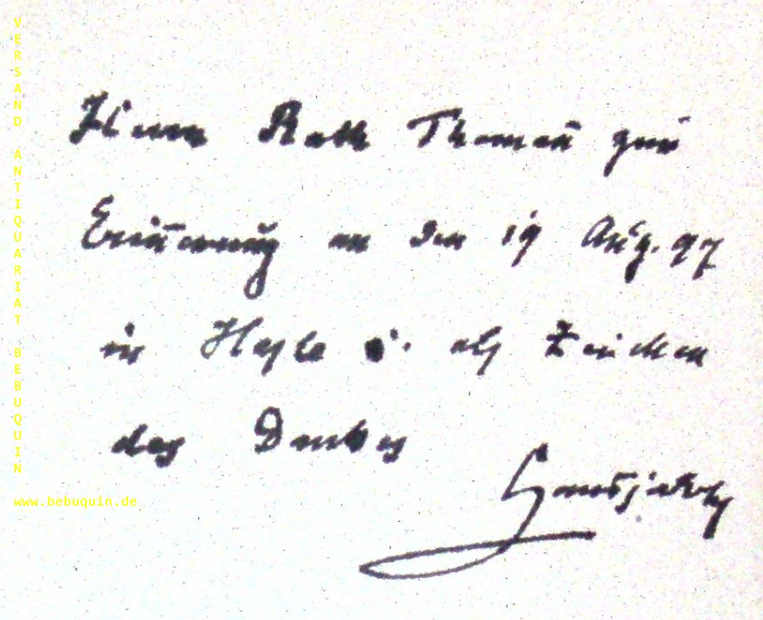 HANSJAKOB, Heinrich: In der Karthause. Tagebuchblätter. Stuttgart (Bonz & Comp.), 1901. kl. 8°. 415 (1) S. mit Ill. von Curt Liebich. ill. OLn. feines Ex. EA. WG² 51 mit einer eigenhändigen 4zeiligen signierten Widmung des Verfassers auf Vorsatz.
