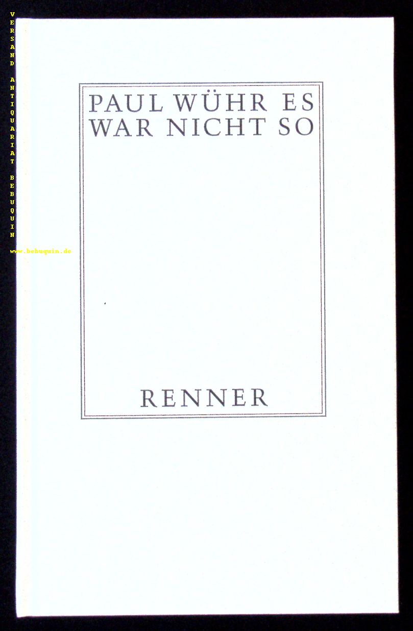 WÜHR, Paul: Es war nicht so. Mit vorangestelltem Märchen Der Eisenhans der Brüder Grimm. München (Renner), 1987. 60 S. OPb. tadellos. EA.