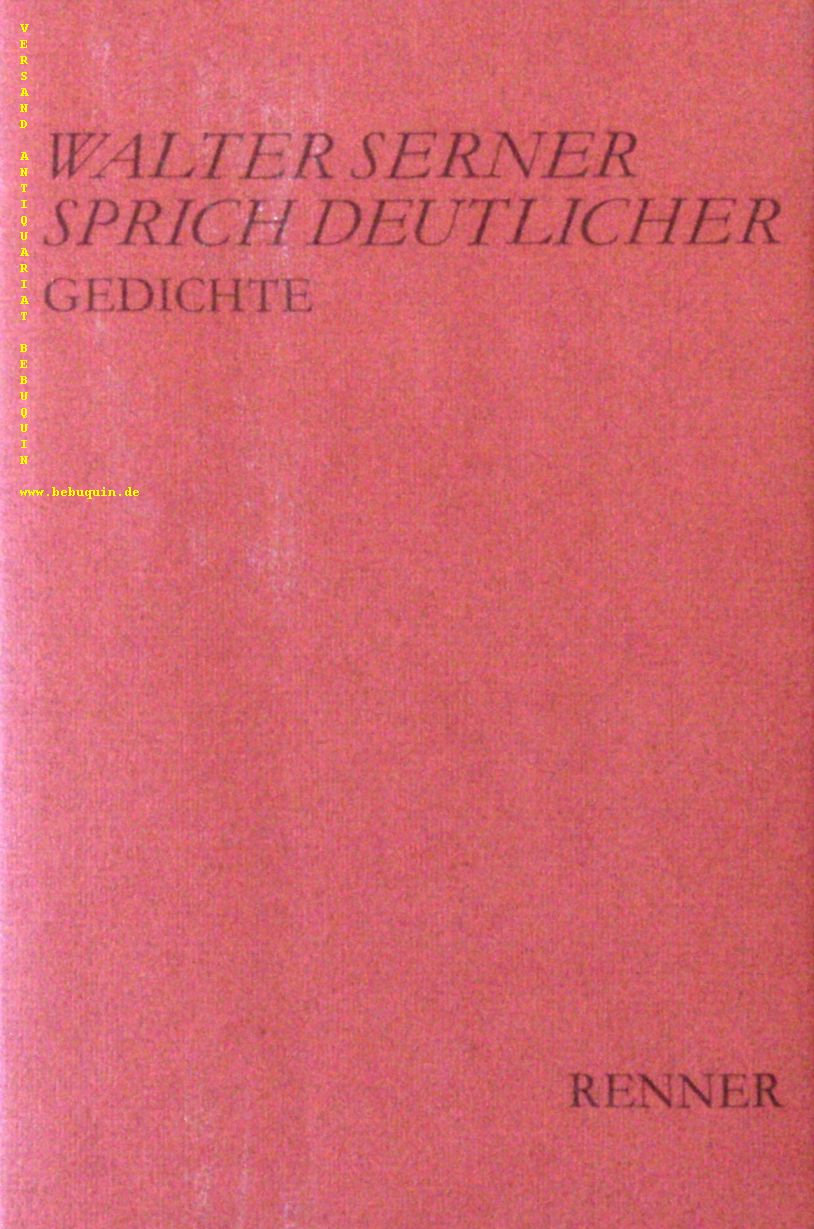 SERNER, Walter: Sprich deutlicher. Gedichte. München (Renner), 1988. kl. 8°. 54 S. mit Bildtafeln. OLn mit OUMschl. tadellos. EA.
