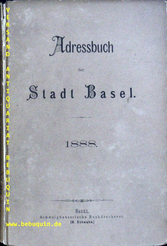 BASEL.– ADRESSBUCH DER STADT BASEL 1888.– Basel (Schwabe), 1888. 384, 16, 68 S. mit zahlr Abb. OPb. Rücken angeplatzt, StaT, sonst gutes Ex.