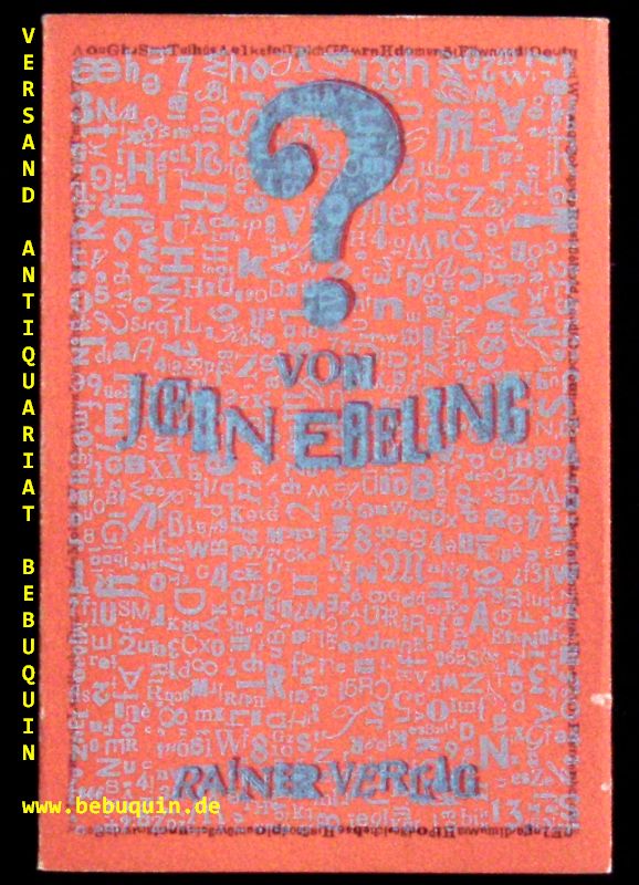 Ebeling, Jörn: ?. Zungenschläge. Ypsilon. ?. Berlin (Rainer), 1980. 12°. 144 S. mit Abb. ill. OKart. tadellos. 1 von 600 Ex. dieser EA mit der eigenhändigen Signatur des Dichters am Druckvermerk.