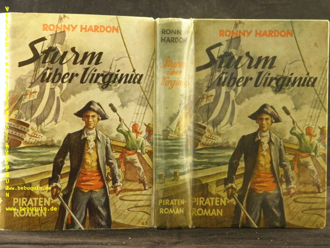 HARDON, Ronny: Sturm über Virginia. Piraten-Roman. Kaiserslautern (Skorpion), ca 1955. 254 S. farb. ill. OSupronyl mit OUmschl. gestempeltes Leihbuch, fliegender Vorsatz fehlt, sonst gut erhalten. EA.