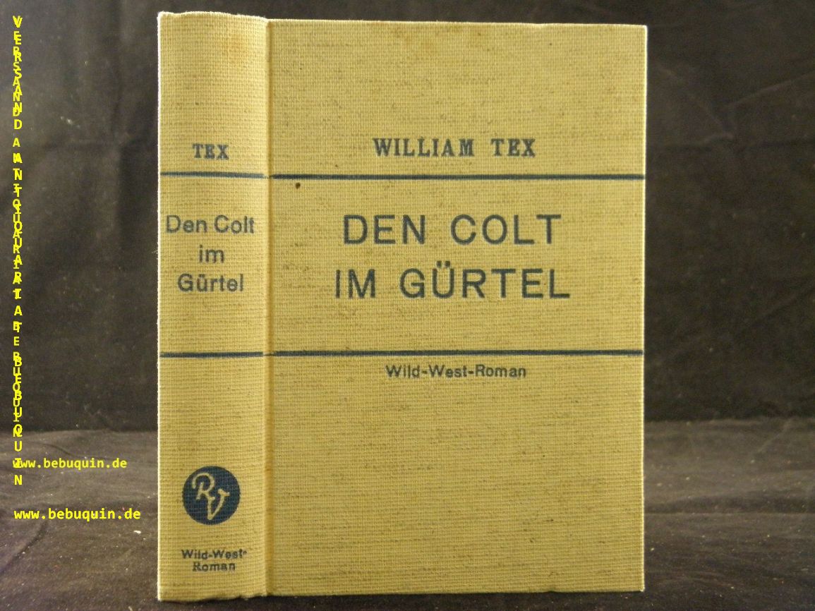WILLIAM TEX.– MÜLLER, H.C.: Den Colt im Gürtel. Wild-West-Roman. Leipzig (Rekord), ca 1938. 270 (2) S. ill. OLn gutes Ex. = TEX 12. EA.