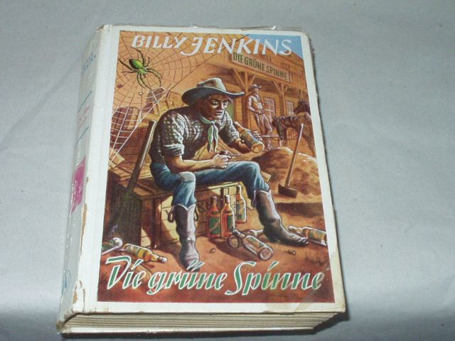 BILLY JENKINS.– KRÜGER, Nils: Die grüne Spinne. Erzählt von Nils Krüger. Sinzig (Uta), 1953. 255 S. farb. ill. OPb. ehemaliges Leihbüchereiexemplar mit einigen Stempeln. Rückenkante angeplatzt. = Billy Jenkins Wild-West-Erzählungen, Bd. 87. 1. Aufl. dieser Ausgabe.