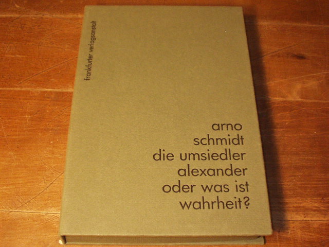 SCHMIDT, Arno: Die Umsiedler. Alexander oder was ist Wahrheit. 2 Prosastudien. 2 Bände. Frankfurt (Verlagsanstalt), 1990. 71, 108 S. OKart in OKassette. gutes Ex. 1 von 1000 handschriftlich nummerierten Ex.