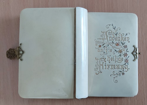 EDER, Karl: Die Heiligen Gottes in ihren Gebeten. Ein vollständiges Gebet- und Andachtsbuch für Katholiken. Neue Ausg. nach dem … Gebetbuche „Der Dom der Heiligen“. Winterberg (Steinbrener), 1899. 11 x 7,5 cm. 448 S. mit Frontispiz des taufenden Christus darstellend. OHLn mit drei Lackdeckeln mit feiner Jugendstilprägung, dreiseitigem Goldschnitt und Metallschieße. . feines Ex. des Schmuckbändchens. EA.