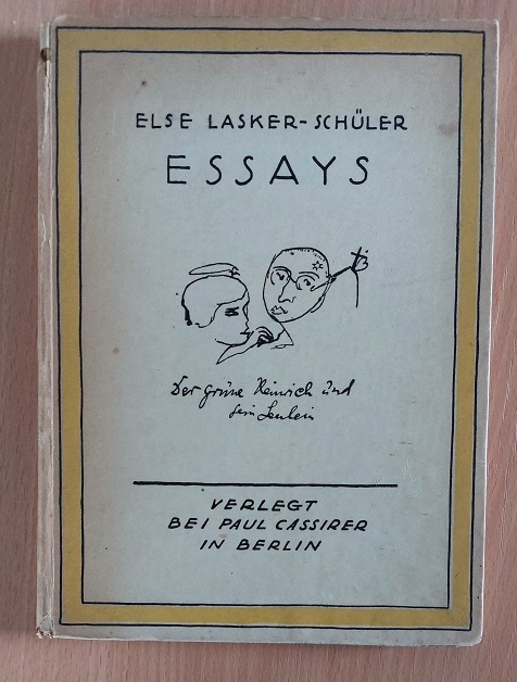 LASKER-SCHÜLER, Else: Essays. 2. Aufl. Berlin (Cassirer), 1920. Gr. 8°. 103 S. OPb mit einer Einbandzeichnung der Verfasserin. oberes Kap. bestoßen, etwas gebräunt, sonst gut.