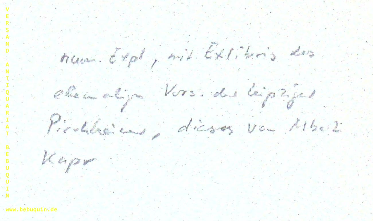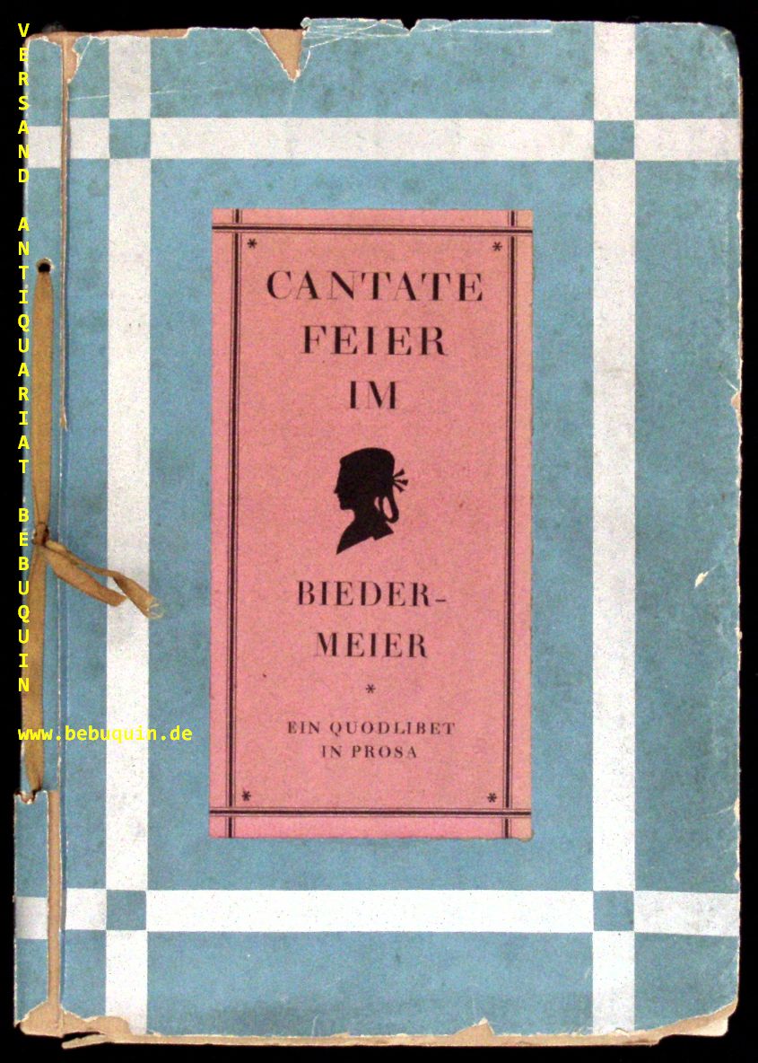 LANGE, Walter: Cantatefeier im Biedermeier. Ein Quodlibet in Prosa. Leipzig (Fischer & Wittig), 1927. Gr. 8°. V, 245 S. mit farb. Titelblatt und 4 mont. Farbtafeln.– OKart mit Fadenbindung. Einbandkanten etwas lädiert, sonst gut erhalten. Nr. 254 von 1000 Ex. auf Büttenpapier. Mit dem Ex libris des Horst Bunke von Albert Kapr.