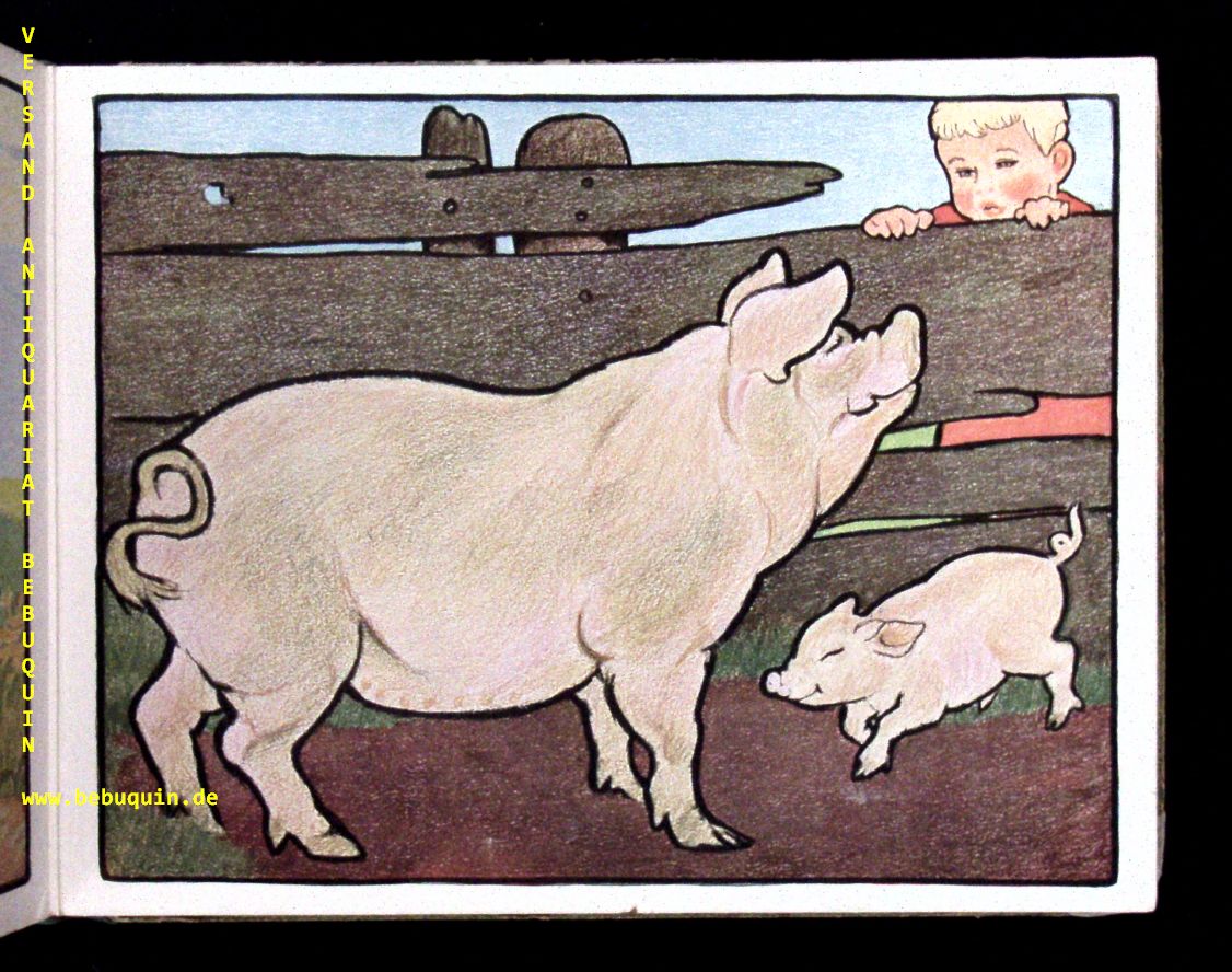 CASPARI, Gertrud: Tierbilderbuch. 11./12. Auflage. Leipzig (Hahn), 1944. Quer 4°. 6 unpag. Pappbl. mit farb. Bildern von Gertrud Caspari. farb. ill. OHLn. Kanten etwas berieben, leicht bespielt. letzte Auflage des oft nicht nachweisbaren Titels mit den eidrucksvolen Motiven. Neubert