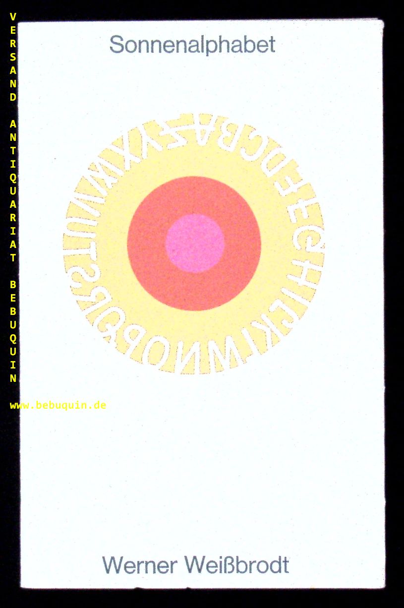 WEISSBRODT, Werner: Sonnenalphabet. Pforzheim (Weißbrodt), 1979. 48 S. mit ca 24 farb. Bildtafeln. farb. ill. OKart. tadellos. Nr. 8 von 150 Ex. der EA.