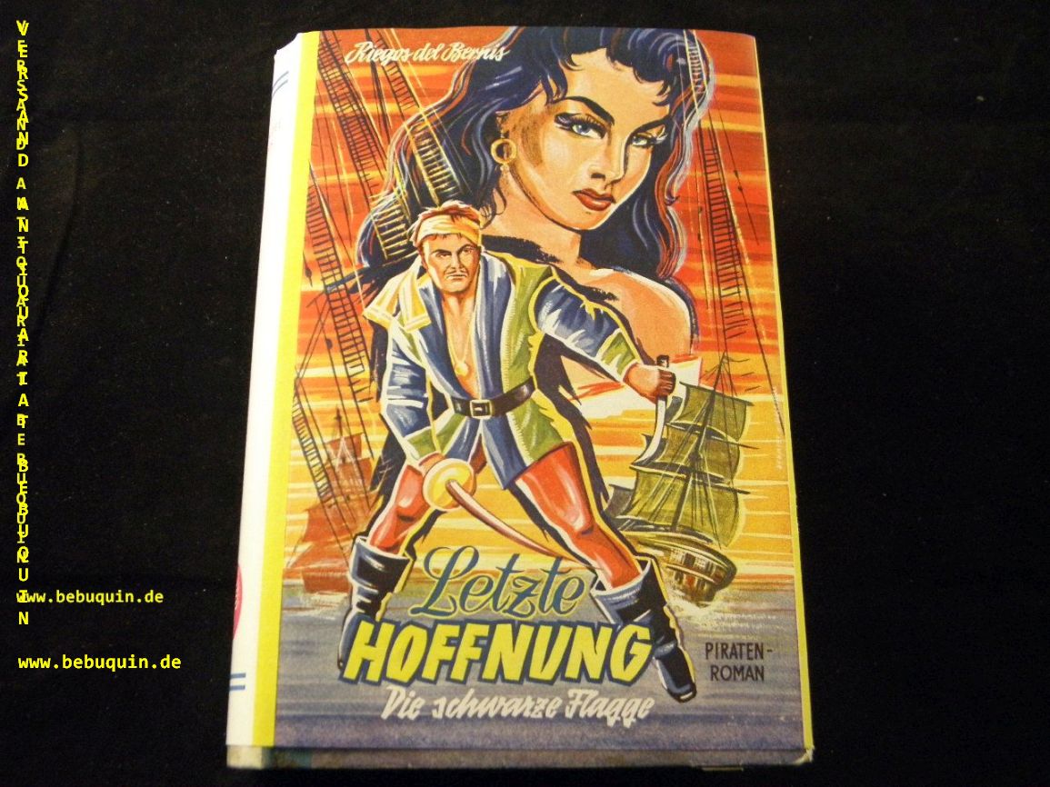 RIGOS DEL BERNIS.– BÖMKE, Bernhard A.H.: Letzte Hoffnung – die schwarze Flagge. Piraten-Roman. Nach alten Berichten von Rigos del Bernis. Kaiserslautern (Skorpion), ca 1955. 255 S. farb. ill. OHLn mit OUmschl. gestempeltes Leihbuch. EA.