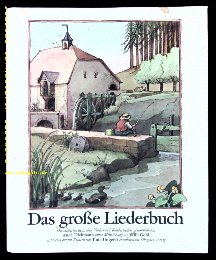 UNGERER.– DIEKMANN, Anne: Das große Liederbuch. 204 deutsche Volks- und Kinderlieder. Zürich (Diogenes), 1975. 4°. 232 S. mit 156 bunten Bildern von Tomi Ungerer. OLn mit OUmschl. Umschlag leicht fleckig. EA.