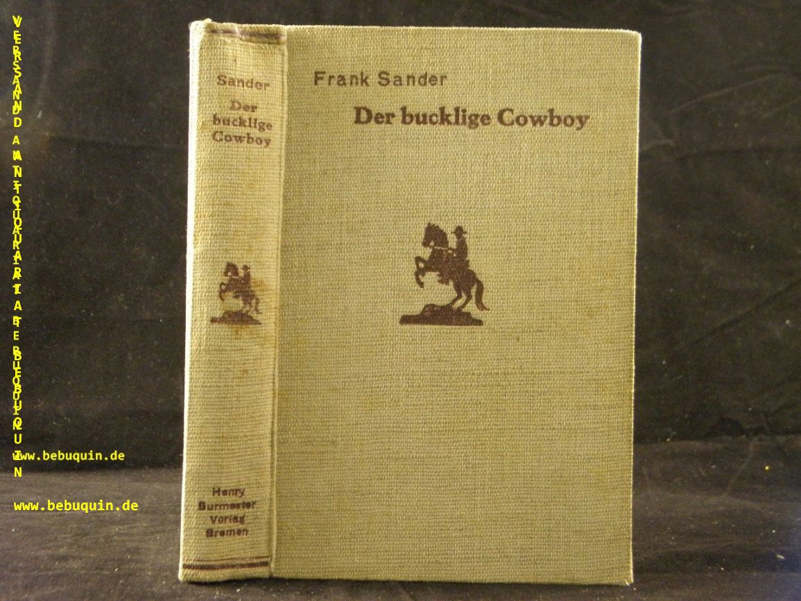 SANDER, Frank: Der bucklige Cowboy. Bremen (Henry Burmester), 1935. 256 S. ill. OLn. Kap etwas eingedrückt, NaV. = Burmester’s Abenteuer – Serie. EA. Frank Sander hieß in Wirklichkeit Otto Neitsch und war Berliner Senator. Geboren 1892 in Eckernförde, Vater dreier Söhne und gestorben 1941 in Berlin.