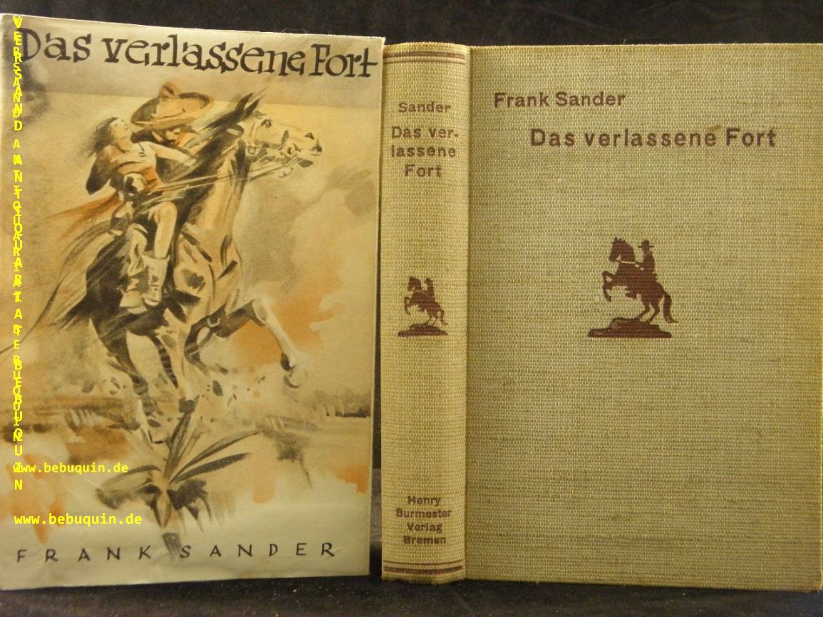 SANDER, Frank: Das verlassene Fort. Bremen (Henry Burmester), 1935. 253 (3) S. ill. OLn. mit OUmschl. Umschlag am Rand hinterlegt, NaV, feines Ex. = Burmester’s Abenteuer – Serie. EA. Frank Sander hieß in Wirklichkeit Otto Neitsch und war Berliner Senator. Geboren 1892 in Eckernförde, Vater dreier Söhne und gestorben 1941 in Berlin.