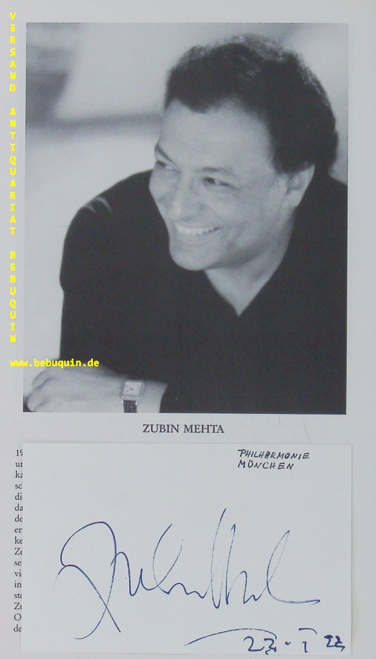 MEHTA, 2 eigenhändig datierte und signierte Autogrammkarten.