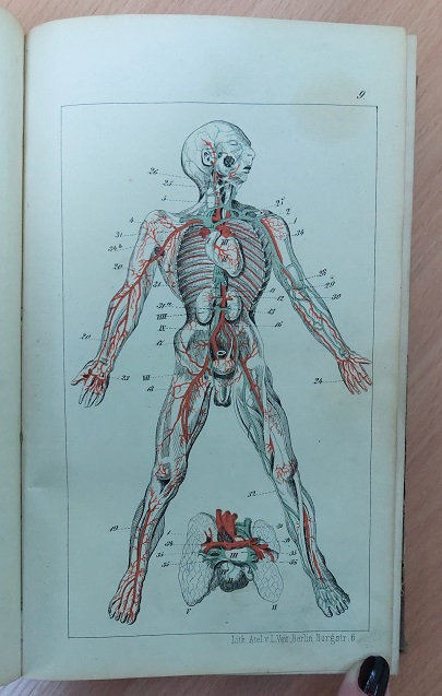 MEDIZIN.– LESSING, Michael Benedict: (Vorwort) Die wundärztliche Praxis auf dem Lande und in kleinen Städten. Ein vollständiges Handbuch der kleinen Chirurgie nebst Anatomie und Krankenwartung. Nach fremden und eigenen Erfahrungen bearbeitet von einem praktischen Wundarzt. 2. Aufl. Berlin (Oehmigke), 1859. XXIV, 496 S. mit 10 lithographirten anatomischen Tafeln und 183 Textholzschnitten sowie den Anhängen über die Prüfungen der Heildiener und Chirurgengehilfen mit 104 Seiten und dem Anhang „Erste Hülfe bei Lebensgefahren von A. Paasch mit 58 Seiten. HLn der Zeit mit goldgeprägter Rückenschrift. Ordnungsgemäß ausgesondertes Bibliotheksexemplar (Rückenschild), leicht gebräunt, NaV, schönes Ex. unauffindbarer Titel.