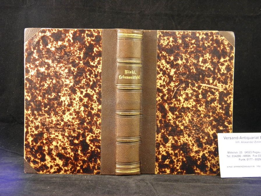 RIEHL, Wilhelm Heinrich: Lebensräthsel. Fünf Novellen. Stuttgart (Cotta), 1888. XIV, 508 S. HLdr der Zeit mit goldgeprägtem Rücken. EA WG² 25 (mit falscher Seitenzahl). Wilhelm Heinrich Riehl war ein deutscher Journalist, Novellist und Kulturhistoriker. In seinen Werken betonte er früh soziale Strukturen und gewann so Einfluss auf die Entwicklung der Volkskunde im 19. Jahrhundert, als deren wissenschaftlicher Begründer er gilt.