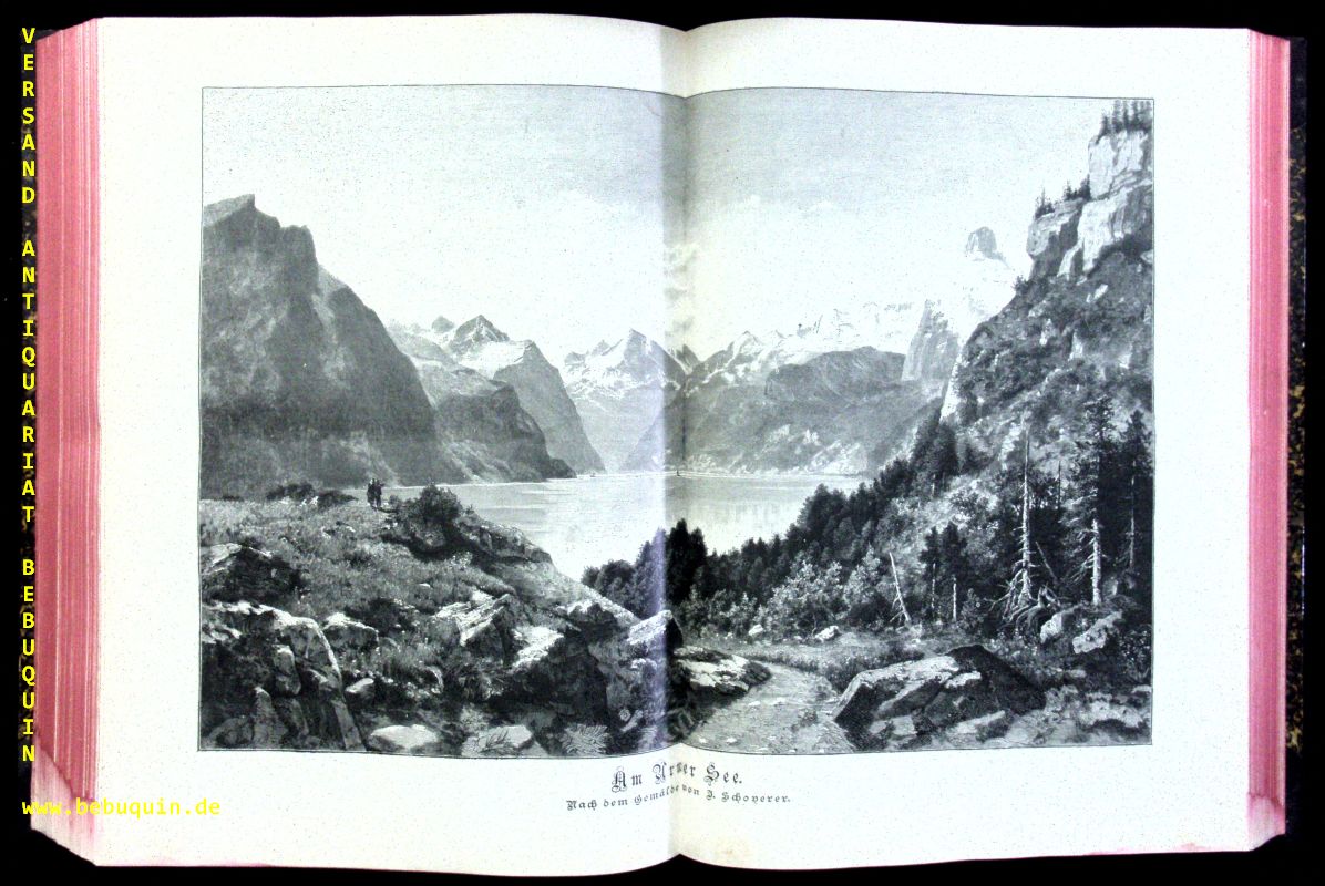 DIE GARTENLAUBE.– Illustrirtes Familienblatt. Jahrgang 1891. Leipzig (Keil), 1891. 4°. VI, 894 S. mit zahlr. Bildern im Text und auf Tafeln. HLdr der Zeit mit goldgeprägtem Rücken. eine Ecke mit Wasserrand, sonst tadelloses Ex. = 39. Jg. Textbeiträge von J. V. von Scheffel, R. von Gottschall, Isolde Kurz u.v..a., biographische Skizzen über Emin Pasch und Casati, H. von Helmholtz (zum 70. Geburtstag), Heinr. Laube, H., v. Moltke, Schliemann, Rud. V. Virchow u.a. * Berichte über Afrika, Colorado, Hawai, Polizei und Verbrechertum in Berlin, Morphium und Kokainsucht, Alpine Gefahren, Hebung gesunkener Schiffe, Europas größte Lokomotive, Golderzeugung in Kalifornien, „Poppele von Hohenkrähen“(=Hegau) u.v.a.