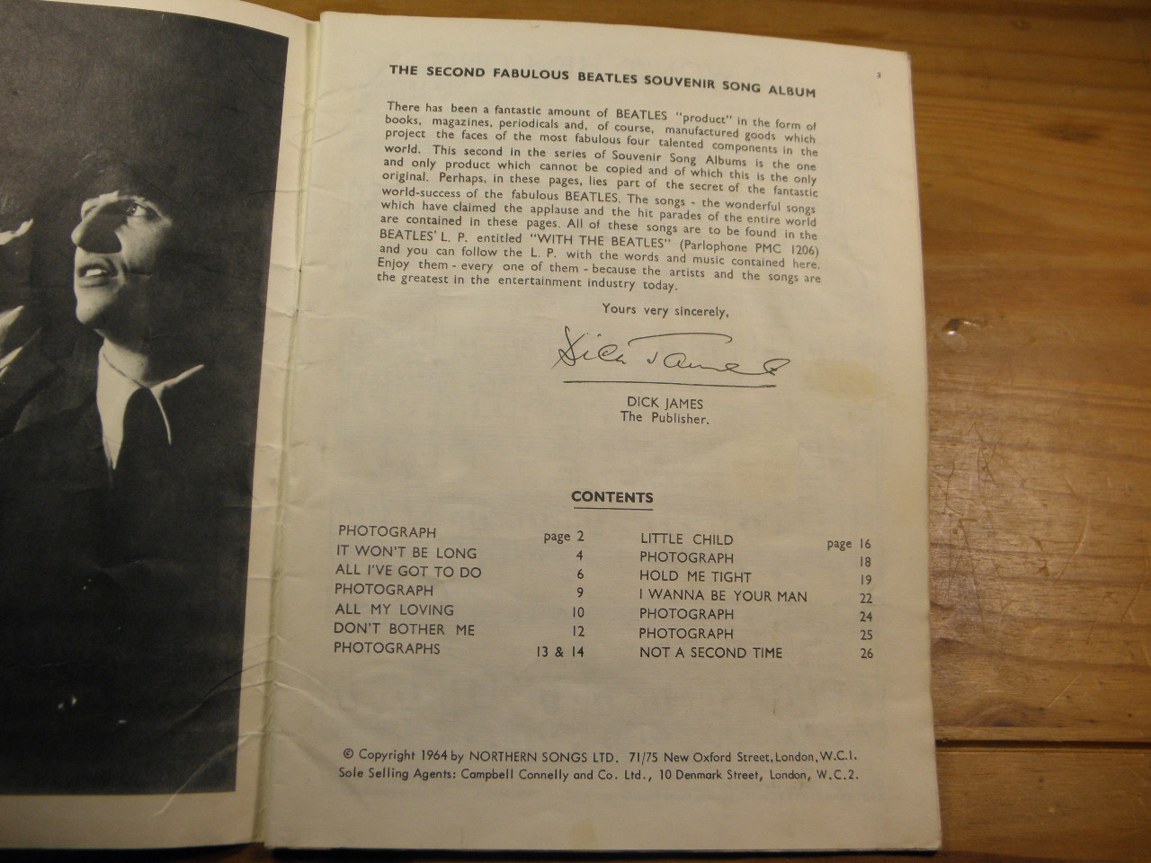 SONGBOOKS.– BEATLES: The 2nd fabulous souvenir Song Album. Pictures and song hits. Gesang und Klavier. London (Northern Song), 1964. 4°. 26 S. mit Noten und Bildern. ill. OKart. Cellophan teils abgeblättert. EA. Inhalt siehe Foto.