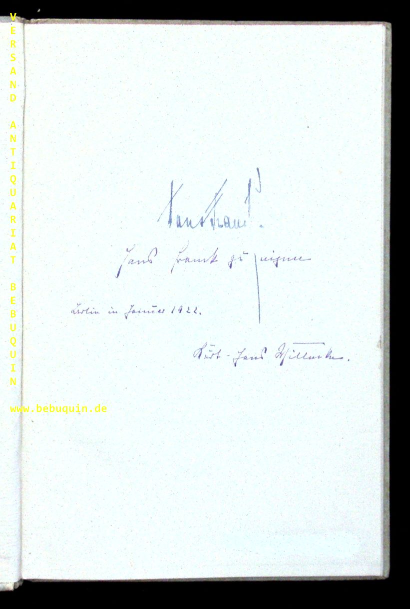 PECHSTEIN.– WILLECKE, Kurt-Hans: Lisa. Sonette. Weimar (Lichtenstein), 1922. 31 S. mit 5 Zeichnungen von Max Pechstein (davon 1 auf Deckel). ill. OPb. Rücken mit zwei Tesastreifen fixiert, sonst gut erhalten. EA der letzten bekannten Veröffentlichung des expressionistischen Dichters. Raabe 332/3 mit einer eigenhändigen datierten und voll signierten Widmung des Verfassers an Hans Franck, sowie Francks eigenhändiger Namenszug auf Vorsatz. Absolut selten. Derzeit wird diese Rarität weltweit nicht in der Originalausgabe angeboten.