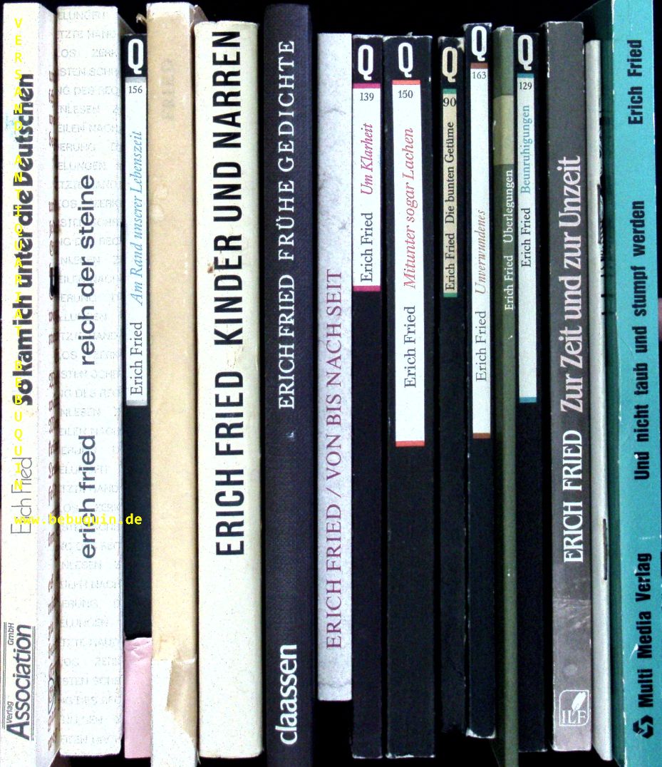 FRIED, Erich: Großes Konvolut mit über 30 Titeln. Dabei 18 Erstausgaben: WG² 15, 18, 22, 27, 51, 53, 54, 62, 69, 73, 75, 76, 81, 84, 91, 94, 99, 101. insgesamt 33 Bände. Berlin (Wagenbach u.a.), 1963 ff. zusammen mehrere tausend Seiten. OKart. sowie OPb. sowie OLn. überwiegend sehr gut erhalten. Umfangreiche Sammlung.