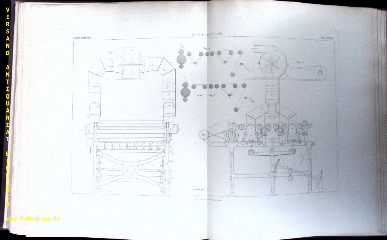 TECHNIK.– ALCAN, Michel: Traite du travail des laines peignees de l’alpaga, du poil de chevre, du cachemire etc. … Atlas. Paris (Baudry), 1873. Fol. 2 Bl. + 37 Tafeln. Ln der Zeit. Rückenkante angeplatzt, vorderes Gelenk gelockert, makulierter Bibliotheksband, insgesamt gut erhalten. = Fabrication des étoffes. EA.