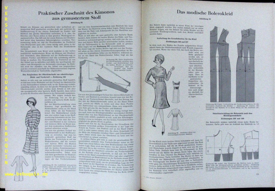 MODE.– MÜLLER & SOHN: Der Zuschnitt für die Damenschneiderei. Blusen, Kleider und Wäsche. 17. neu bearb. und erweiterte Aufl. München (Deutsche Bekleidungs-Akademie), ca 1956. kl. Folio. 148 S. mit 123 Fotoabb u. Nähanleitungen sowie 365 Zeichnungen u. Schnitte. OLn mit Goldprägung. einige Seiten am Rand etwas bestoßen, vereinzelte Kreuzchen, insgesamt gut erhalten.